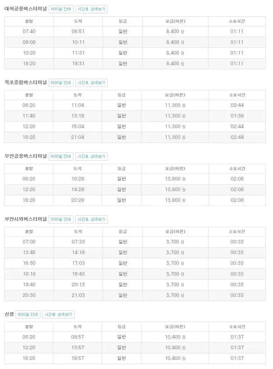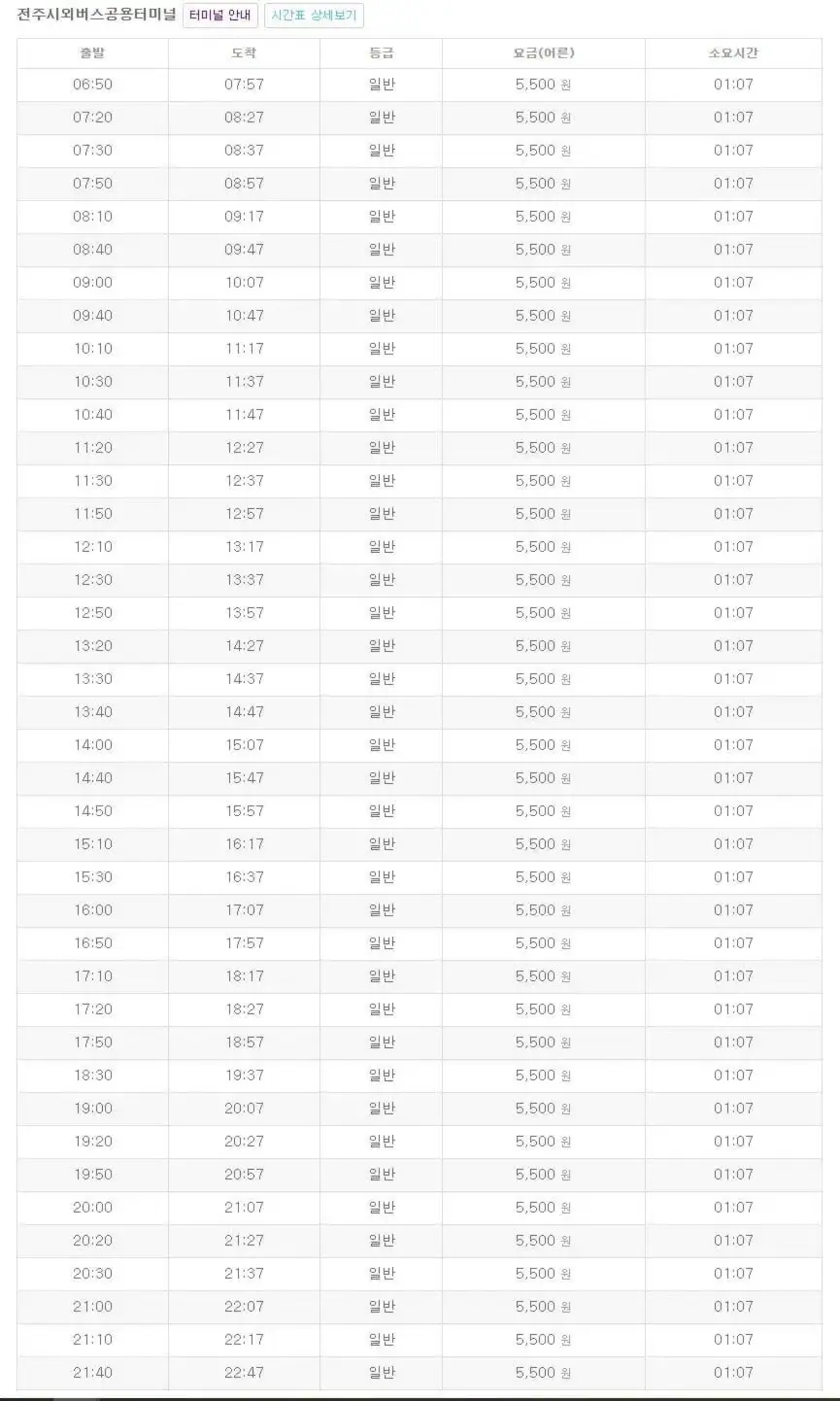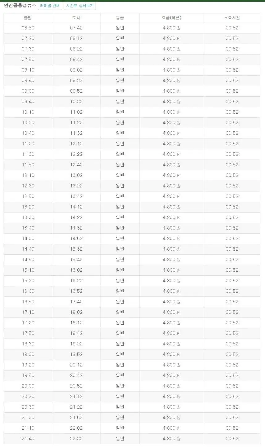 정읍시외버스터미널 시간표 조회
