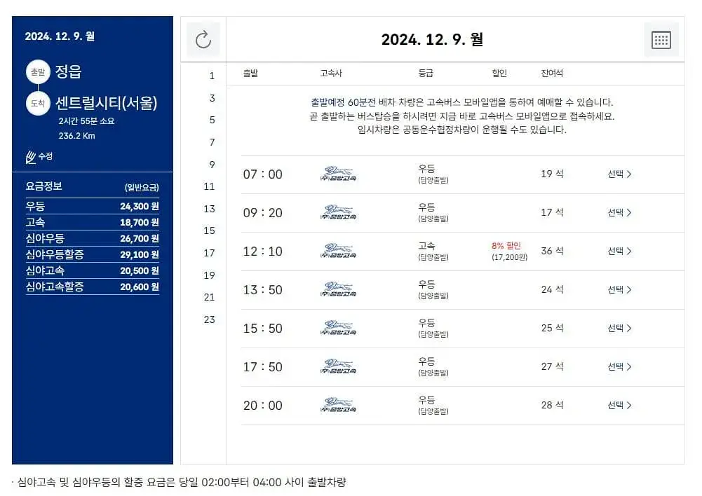 시간표에서 원하는 버스를 선택하세요.