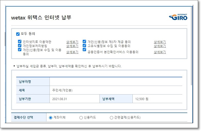 재산세를 조회하면서 간혹 주민세 납부가 필요할 수도 있습니다. 주민세는 매년 8월에 부과되며, 위택스를 통해 재산세와 함께 쉽게 조회할 수 있습니다. 주민세 역시 납부 기한을 넘기면 가산금이 부과되므로 미리 확인하여 기한 내에 납부하는 것이 중요합니다.