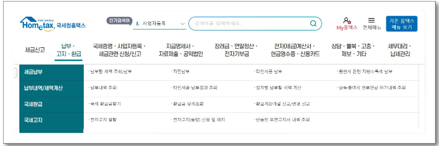 이 메뉴를 통해 세금과 관련된 모든 납부 및 환급 업무를 간편하게 처리할 수 있습니다.