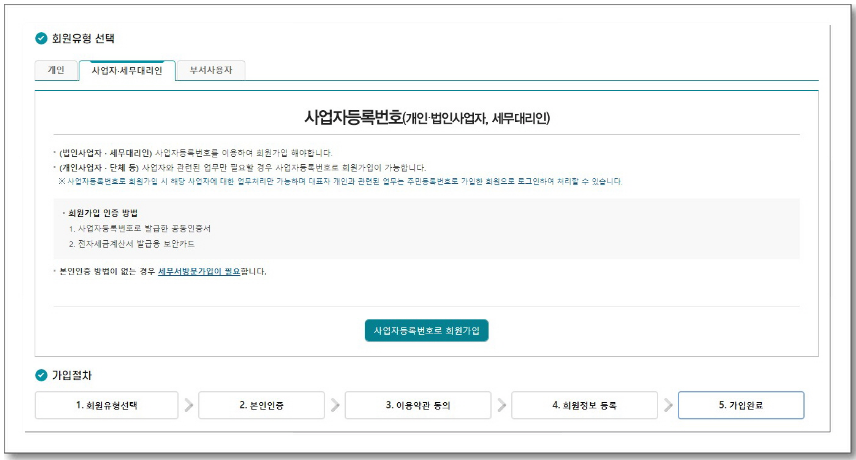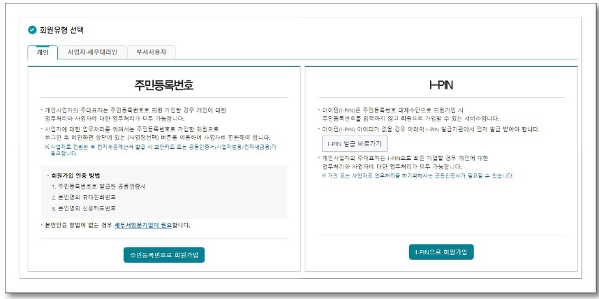 - 가입 방법: 사업자는 공동인증서를 통해 가입해야 합니다. 세금계산서 발행 및 신고 업무를 위해 반드시 인증서가 필요합니다.