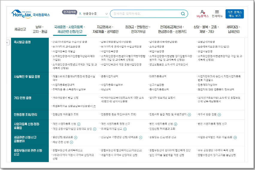 3. 국세 증명 발급 및 사업자 등록